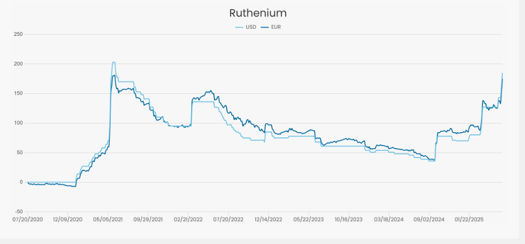钌的供应极其稀少,且不在任何交易所进行交易。有交易员称,目前交易商正争相抢购任何可得的钌供应,甚至主要买家也面临采购困难。